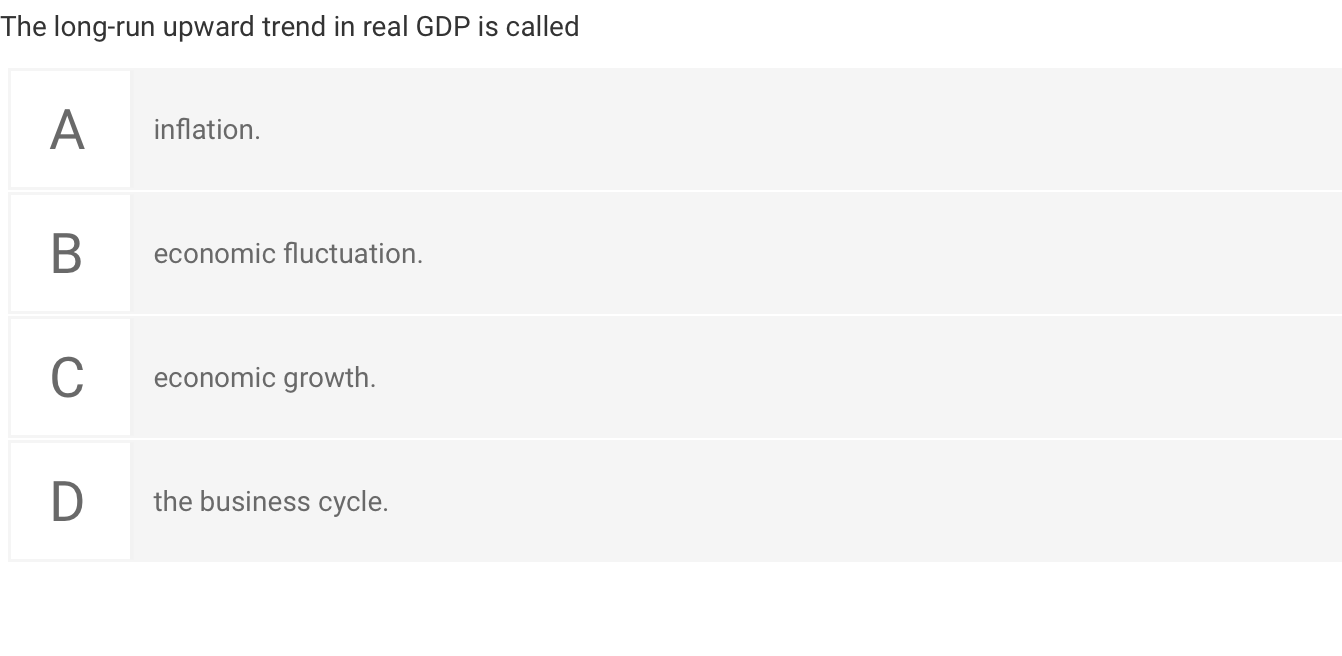 The long run upward trend in real GDP is called a the business cycle b inflation The long run upward trend in real gdp is called a the School James Madison University. The long-run upward trend in real GDP is called. How is this possible given business cycles.